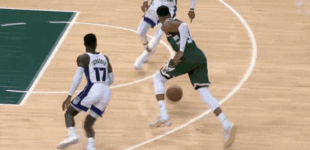 第三节比赛,字母哥坦克突破无人可挡,眼看又是一记暴力扣篮,国王最后一道防线——威少,一把狠狠地抱住了字母哥,蛮牛一般的字母哥一个大力沉肩,差点就把威少甩飞。