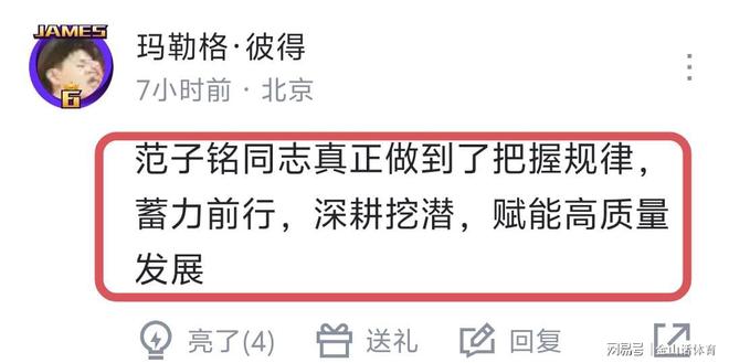 27岁的范子铭,在京辽焦点战上一分没得,却在潜力赛上大杀四方,10分钟6中6高效砍下12分,也让许多网友乐了。“挺有潜力的!”;“范子铭同志真正做到了把握规律,蓄力前行,深耕挖潜,赋能高质量发展。”;“不愧是顶薪”;“未来可期”;也有网友认为“不必嘲笑,潜力赛找找状态,之后有用,赛季很长”……