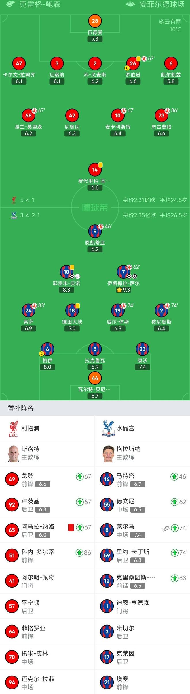 英联杯利物浦0-3遭水晶宫淘汰,伊斯梅拉-萨尔双响,纳洛直红